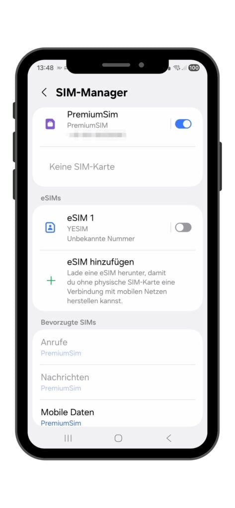 Für die Reise habe ich dann folgende Einstellungen im SIM-Manager vorgenommen: